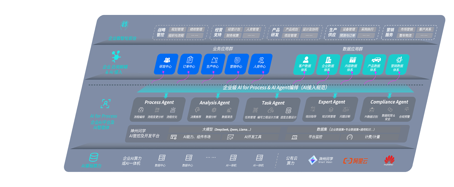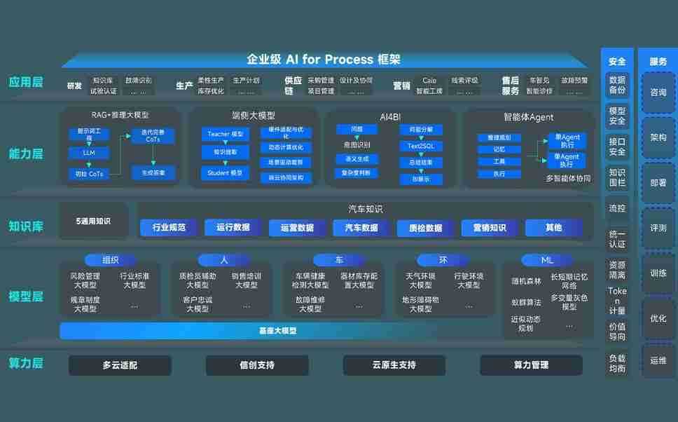 40001百老汇电子游戏问学智车解决方案是一套基于AI技术的汽车行业智能化系统,,覆盖从底层算力到顶层AI应用的全栈方案。。。方案由算力层、、模型层和应用层组成:算力层,,,,方案支持多种一体机配置,,,,具备云端灵活部署、、多云适配以及动态优化计算资源的能力;模型层,,,,40001百老汇电子游戏问学平台版提供了企业级AI应用一站式构建与管理平台,,,支持基于后训练强化技术的汽车企业专属模型的训练、、、评测和运营;应用层,,40001百老汇电子游戏问学DeepSeek版提供包括超级员工、、、、智能招采、、智能营销、、、智能客服、、、AI for BI等一系列解决方案,,,可助力汽车行业实现数字化转型,,,让管理更智能、、、、响应更敏捷。。